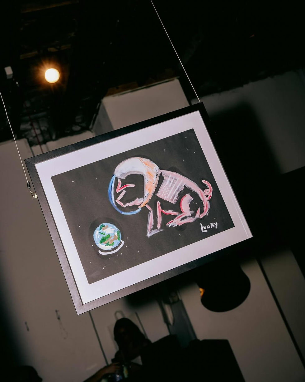 Lucky is an imaginative storyteller, learning foundations from John Collee's AFTRS Screenwriting seminar, and travelling to New York in 2022 to study story structure under screen and writing lecturer Robert McKee. Lucky uses these storytelling principles to construct scenes in his artwork which empathetically explore complex interpersonal exchanges and idiosyncratic social situations, with recurring motifs such as anthropomorphised animals and retro pop culture.